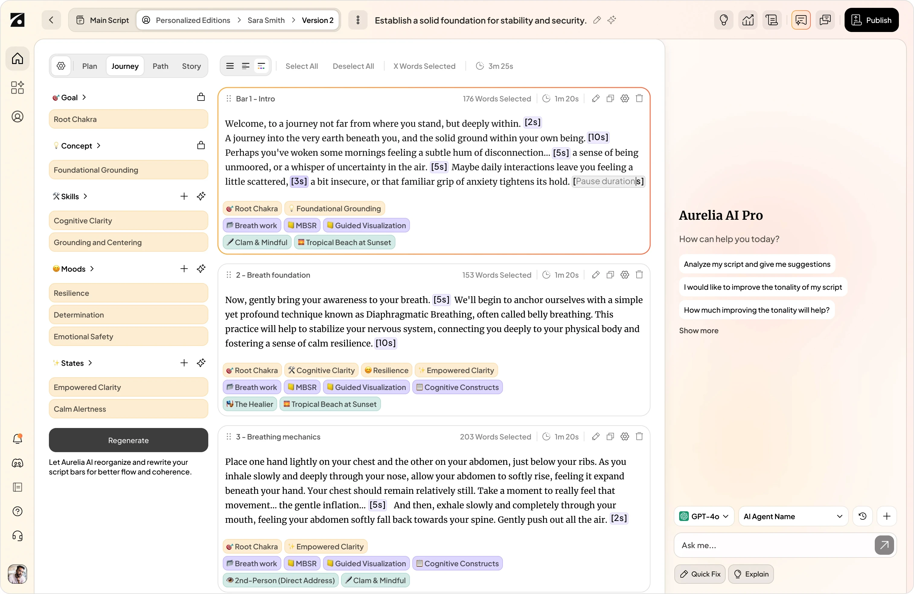 Aurelia integrates top-tier AI models for text, voice, music, and video into one streamlined platform designed to help you scale your wellness solutions.